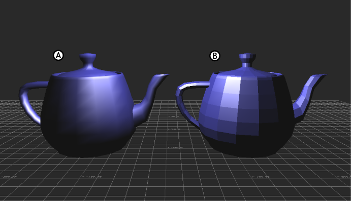 Faceted shader A. Without shader. B. Faceted shader applied.