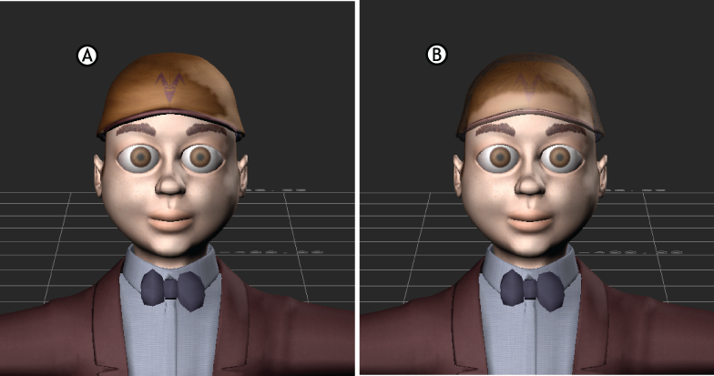 A. Cap with no transparency shader B. Cap with Lighted shader Accurate Transparency set to 0.43.