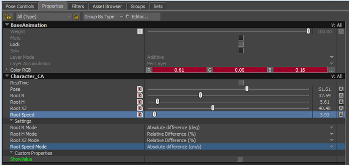 <charactername>_CA, select one of the following comparison parameters to plot its curve in the FCurves window: