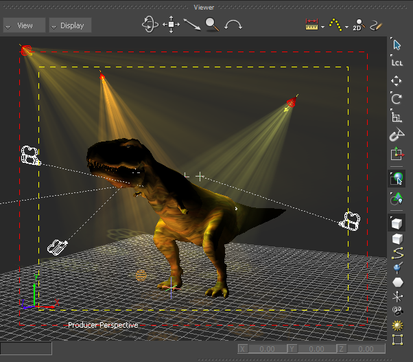 The Viewer window is also the space where your scenes are played, the point of view that is rendered, and the stage on which the animation and models are seen.