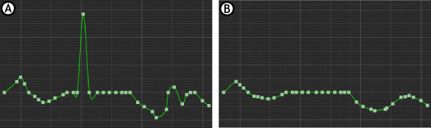 Replaces unwanted peaks and spikes with cubic keys that have an average value based on the neighboring keys.