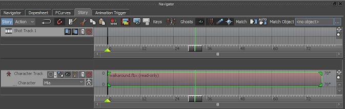 In the following procedures, you create a Character track in the Story window, define the character affected by the track, and add animation.