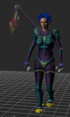 The following figure shows the default view (set to Producer Perspective) was orbited to show Mia from the front.