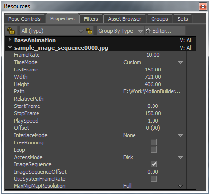 When you import an image sequence in MotionBuilder, by default, it uses the system frame rate (selected in the Transport Controls window) to play an image sequence. If you change the frame rate in Transport Controls, then the new frame rate takes effect for sequencing images as well.