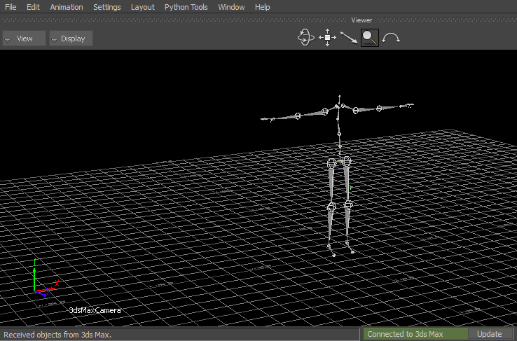 3ds Max skeleton displayed in the Viewer window