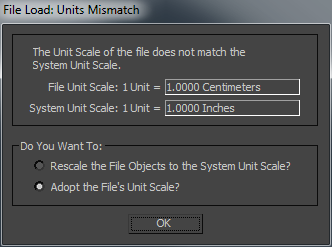 If the File Load: Unit Mismatch dialog appears, proceed to the next step. If this dialog does not appear, skip the next step.