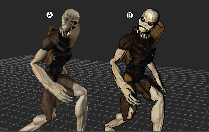Cartoon Look A. With no shaders B. With Cartoon shading.