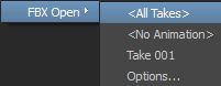 The FBX Open context menu displays.