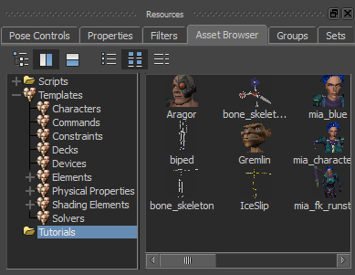 Tutorial assets displayed in thumbnails