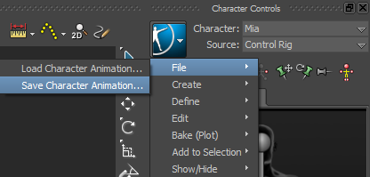 Save Character Animation... from the context menu.