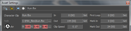 Asset Settings window A. Clip Color settings