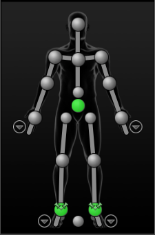 next to the hands and feet in the Character representation let you switch to zoomed in views where you can select individual effectors within the character's hands and feet. Clicking on the hand or foot icon in the upper right corner of each view toggles between the left and right body part.