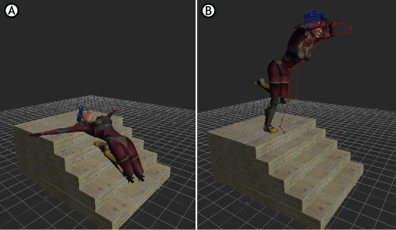 Ragdoll solves A. Without pose B. With pose (shown in red)