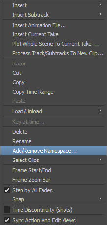 - From the Story window, select one or more story tracks, right-click on them, and select the Add/Remove Namespace context menu option.