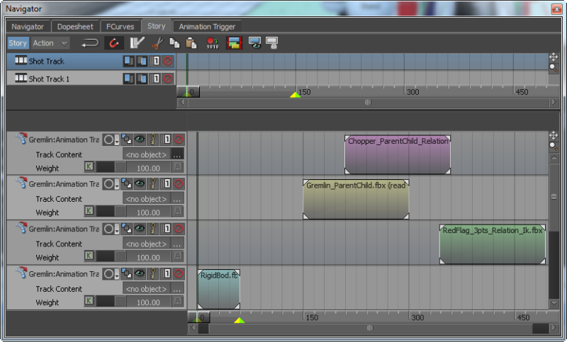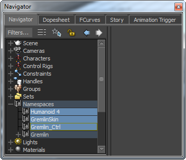 Tip: Press Ctrl+Z to undo any namespace operation that you perform on objects in the Navigator window and story tracks in the Story window.