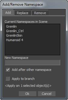 - From the Current Namespaces in Scene list box, select a namespace and click Ok.