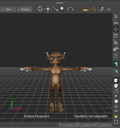 In the Viewer window, the Gremlin character appears in the scene in the T-stance.