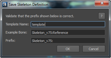 - Prefix — Enter any prefix string that you want to remove from the beginning of all bone names to be added in the template. This is useful if the bone names for the current character include a standard prefix meant to identify that specific character.