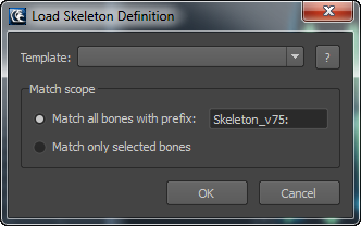 Displays the Load Skeleton Definition window for applying a mapping template and mapping multiple bones automatically by name.