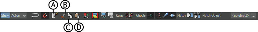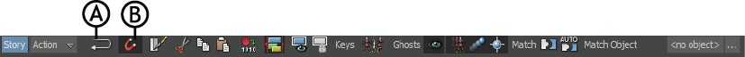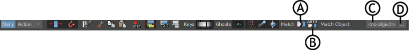Story controls A. Match Options button B. Auto Match option C. Match Object field D. Match Object button