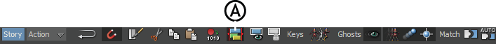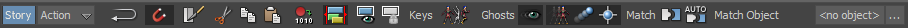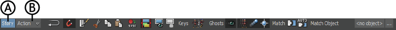 When Story window animation is active, the Story Mode menu is also active. This menu lets you select between the Story window Action and Edit modes. See Disabling the Story window for more information.