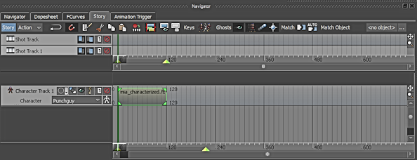 The Match Controls are active only when an animation, camera animation, or character clip is selected. See Matching clips for more information.
