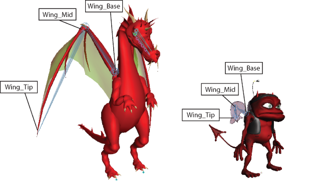 With the proper setup, you can also mirror-paste poses on Character Extensions just as you can on the regular body parts of a character. For example, if your character has symmetrical left and right wings, you can mirror poses from the left wing onto the right wing, and so on.
