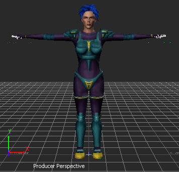In the Viewer window, a model named Mia appears in the T-stance.