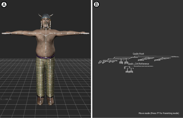 Character’ bones are selected in the Schematic view