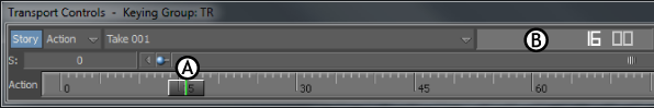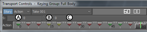Transport Controls A. Body Part keyframe B. Character Extension keyframe C. Full Body keyframe