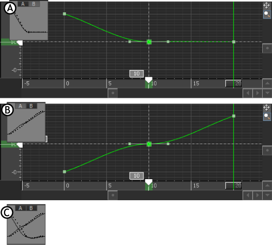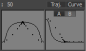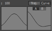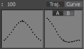 The animation representation area displays the changes you make to animation. The area on the left represents the peak of the trajectory or curve of the animation. The area on the right represents the slopes of the trajectory or curve of the animation. See A and B options for more information.