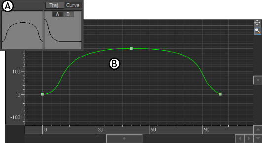 Animation A. Curve and trajectory representation B. Actual trajectory in the Viewer window