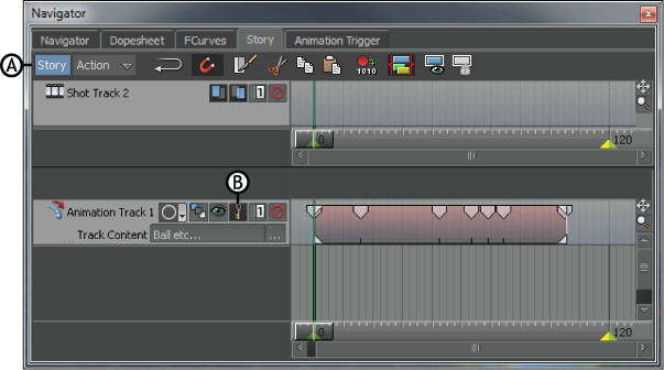 You can view and edit Story window animation in the FCurves and Dopesheet windows, as well as the Transport Controls.