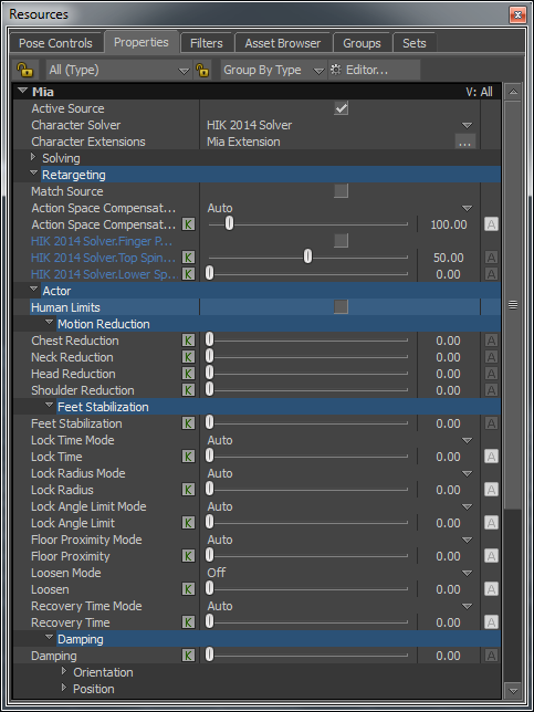 The Damping property settings enable you to damp the orientation of the hips and ankles and define various damping position settings.