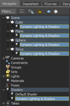 To use the Dynamic Lighting & Shadows shader in the scene objects: