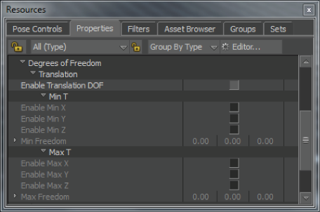 | Enable Min X, Y, Z | Activate and disable the limits on translation specified for each axis in the Min Freedom fields. |