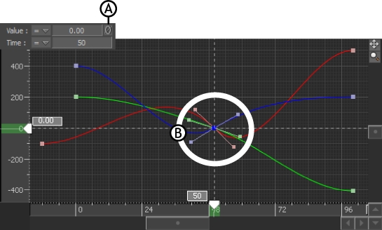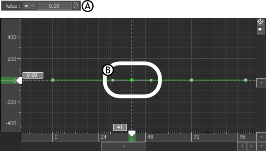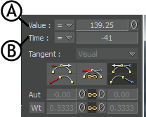 The Value and Time settings (A and B in the following figure) let you edit keyframes by adding, subtracting, or multiplying by a specific value or time for offsetting keyframe selections without changing the animation.