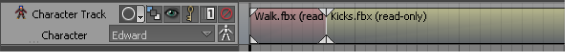 - If you have not done so, add two motion clips to the Character track and push them together so that there is no gap between them.