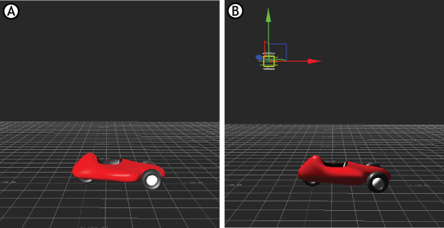 Global Light versus custom light (A) Global light in scene (B) Custom light added to scene