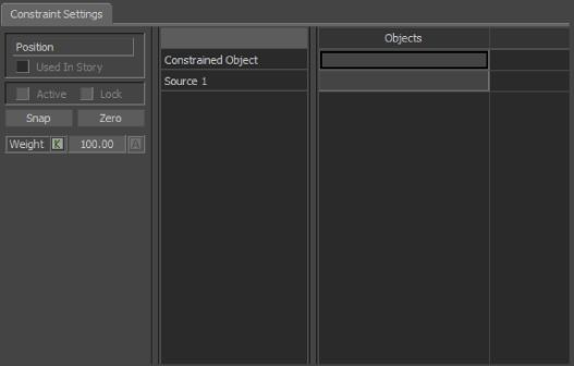 The Position constraint requires the following objects: