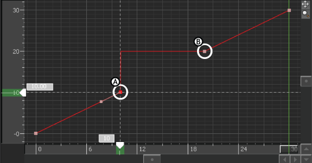 Step Next interpolation A. Selected keyframe B. Next keyframe