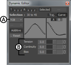 Dynamic Editor A. TCB interpolation mode selected B. TCB settings displayed in the settings area