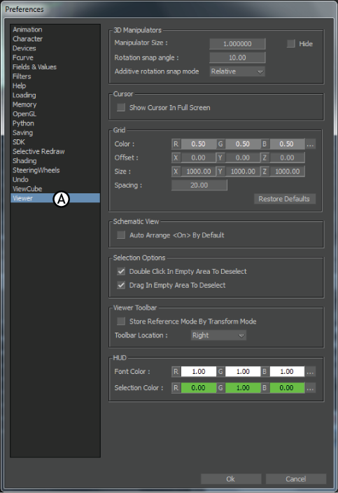 - In the Preferences window, select the Viewer preferences (A).