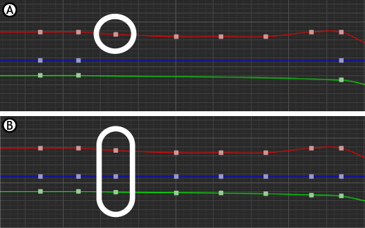 Adds a keyframe to all curves (X, Y, Z) for each key that is encountered . For example, if a light has a keyframe set on its X translation function curve, a keyframe is set on its Y and Z translation curves at exactly the same time. This synchronizes all keyframes on each of the object’s function curves.