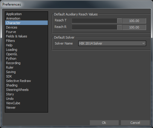 Default Auxiliary Reach Values settings |