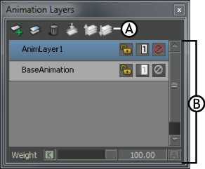 Animation Layer editor A. Animation Layer toolbar B. Animation Layer pane