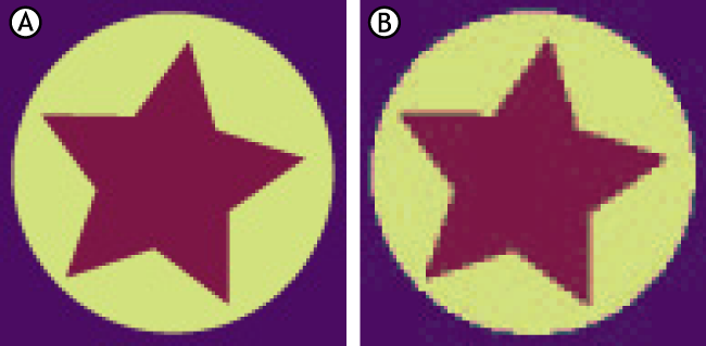 In the figure below, A is an illustration of a model’s edge without depending on pixels or scan lines is shown. Because the smallest unit of measurement is a pixel, the model is adapted by splitting its image into pixels. This results in an aliased, or jagged edge. To smooth this edge, each pixel is sampled at different locations to determine its color.
