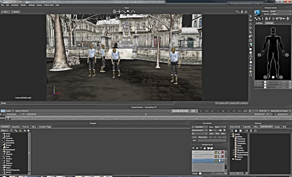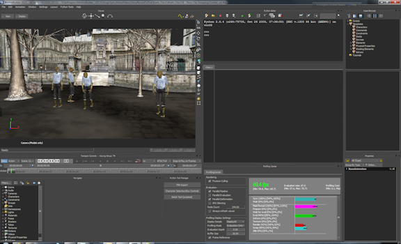 MotionBuilder includes the Editing, Scripting, and Preview layouts that are designed for specific tasks. For example, the Editing layout, with a large Viewer and numerous animation editing tools, is ideal for creating and playing back animation.