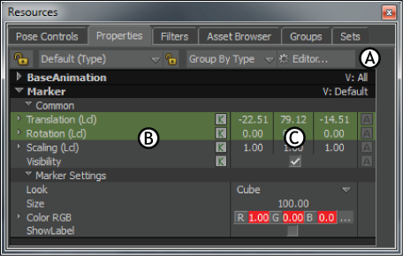 The Properties window lets you view, modify, and keyframe the properties of selected objects.