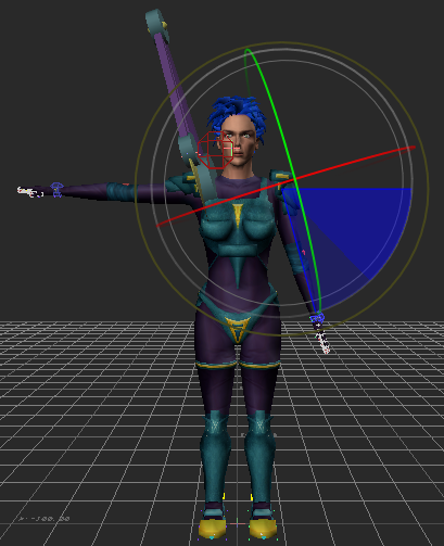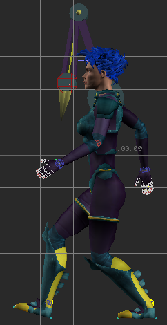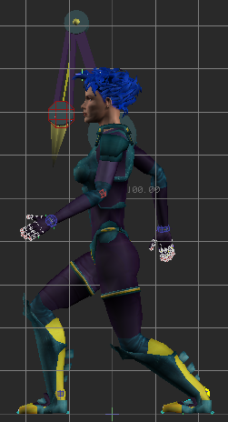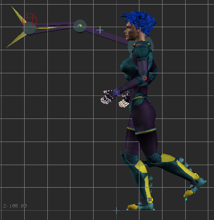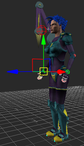 The position of the Character Extension is included with the position of Mia’s body in this pose.